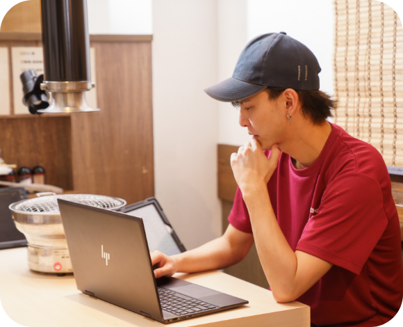 ホールやキッチンのスタッフのマネジメントを含む、お店全体の管理を担っていただきます。先輩スタッフが付いて丁寧に指導しますので、安心して仕事を覚えていただけます。主体的な姿勢のみならず、チームを円滑に運営できる協調性を備えた人材を求めています。